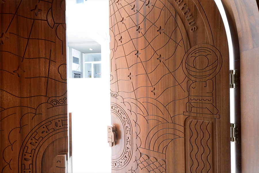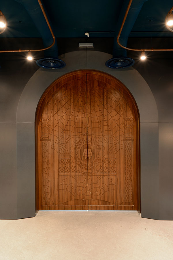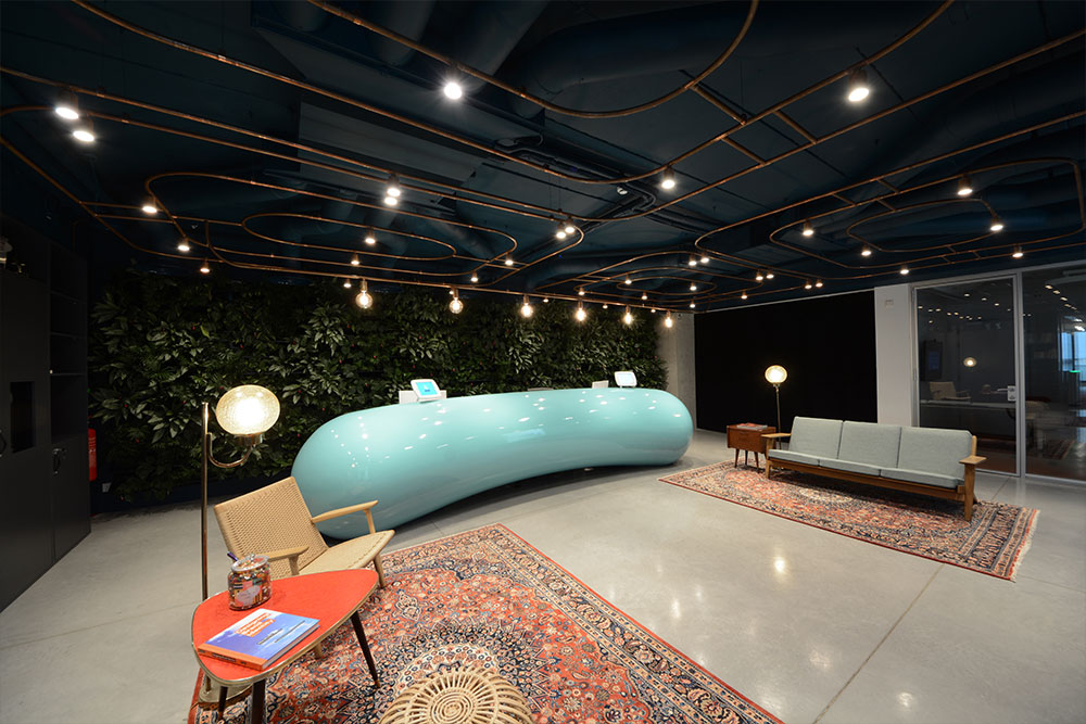 The materials of all the main furnishings are curated to achieve a cohesive look, with a craftsman`s precision in shaping the furnishings. The teak main entrance door is designed to symbolically engrave Casumo and its stories within the surface of the door making it look like it came out of a Peter Jackson film. The suspended copper light fitting overhangs the jellybean and the welcoming reception area.