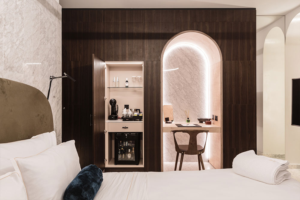 Each collection is composed of composite marble flooring, intricate wood paneling and hand- crafted brass inlays which resonate into the public spaces. This is further enriched with a top layer of geometrical textiles and modern patterns. Finished with the latest lines of designer furniture that follow a true passion for craftsmanship and rework design icons from past masters, it has resulted in a contemporary blend of functionality and beauty.
