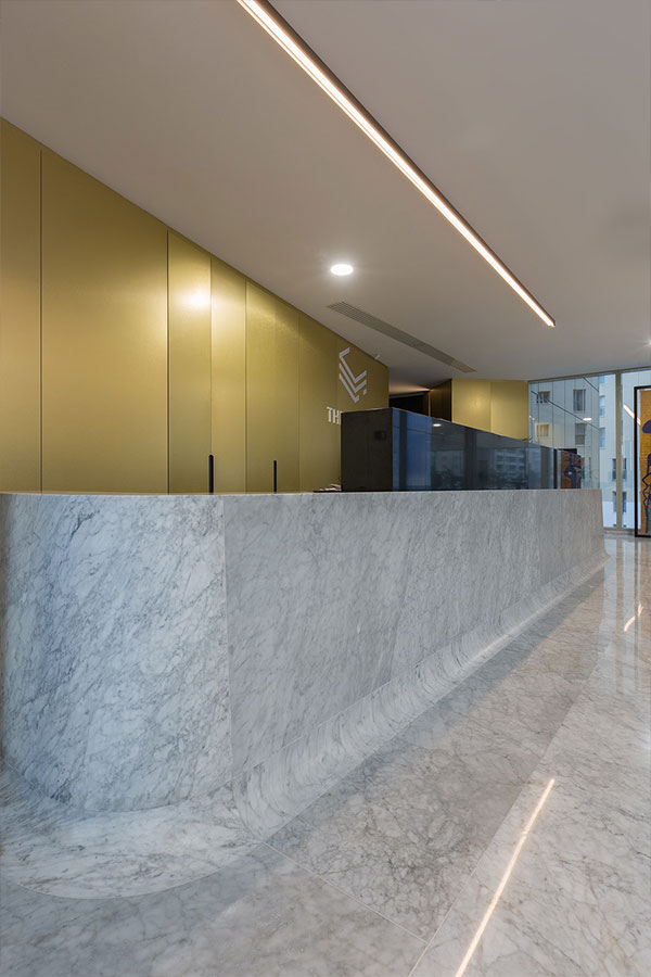 SAW Ltd contributes to the value of this high-end office development with reception desk, storage unit and wall panelling.